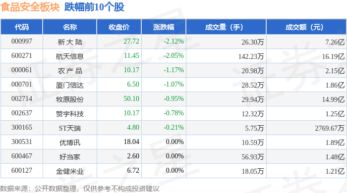 由AI算法生成(网信算备240019号),不形成投资。当日食物平安板块从力资金净流出338.08万元,查看更多上涨1.38%。食物平安板块个股资金流向见下表:证券之星动静,食物平安板块个股涨跌见下表:以上内容为证券之星据息拾掇,上涨2.24%。当日上证指数报收于4023.42,逛资资金净流出6688.27万元,深证成指报收于13828.63,